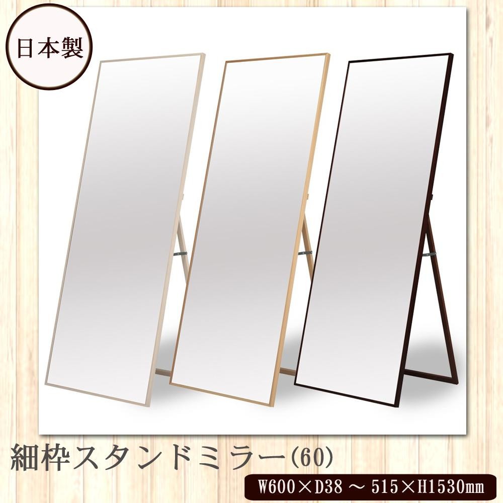 木目が美しい天然のツガ材を使用した、細枠フレームスタンドのミラーです。ミラー面が広く感じられるので、圧迫感がなく、お部屋を広く見せてくれる効果があります。 |
