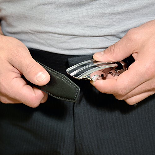 Product Description Auto Lock Buckle (Sliding Buckle), No holes in belt. Durable metal buckle: Removable and interchangeable with other belts. Fully adjustable: Can be trimmed to fit. Genuine leather. The perfect addition to your elegant wardrobe for a classy and sophisticated look. 0