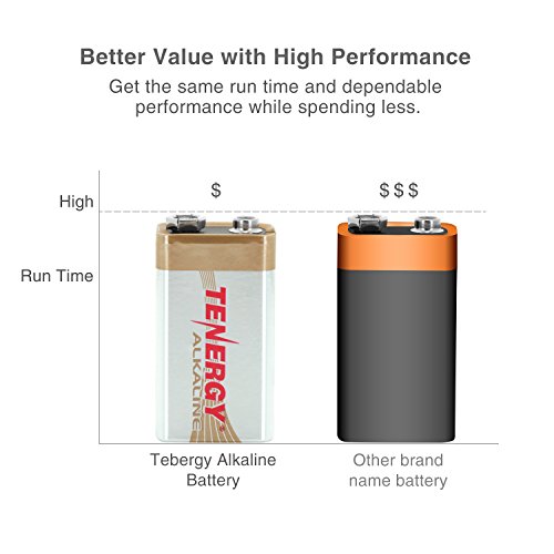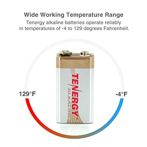 Tenergy 9V Alkaline Batteries - 12 batteries per box Tenergy alkaline batteries deliver outstanding performance and reliability. These batteries are designed to have long-lasting power for your everyday uses. Batteries operate reliably in temperatures of -4 to 129 degrees Fahrenheit. Batteries are date coded to guarantee freshness.