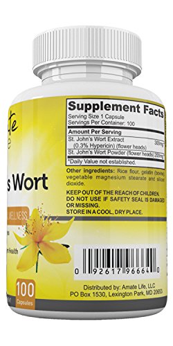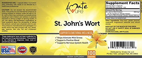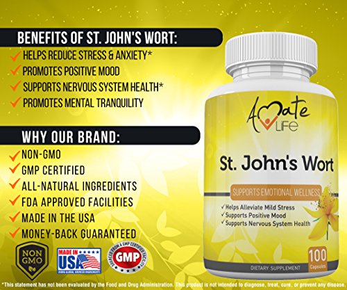 -. Title : Amate Life Saint John’s Wort Dietary Supplement for Better Mood- Natural Herbal Capsules for Mood Improvement- Supports Mental Health and Stability- Soothes Anxiety and Fights Depression- 100 Capsules