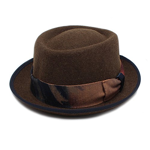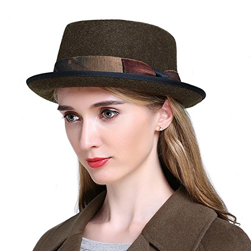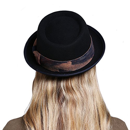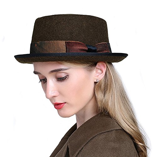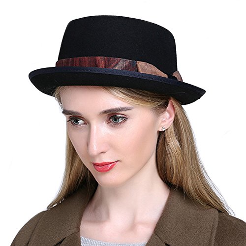 Women's Wool Felt Porkpie Fedora Hat Vintage Roll Brim Bowler Derby Hats