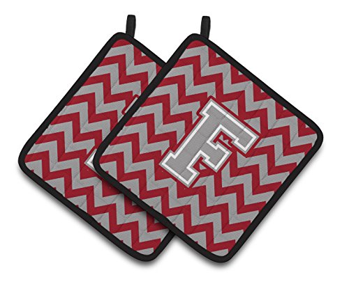 Caroline's Treasures Letter F Chevron Crimson & Grey Pair of Pot Holders CJ1043-FPTHD, 7.5HX7.5W, Multicolor