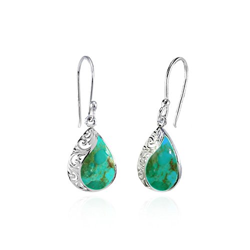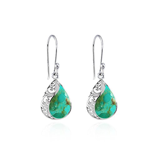 FEATURE - These gorgeous earrings feature a pear-shape filigree design with simulated Turquoise for a unique look.