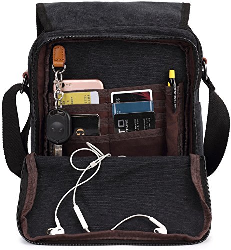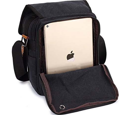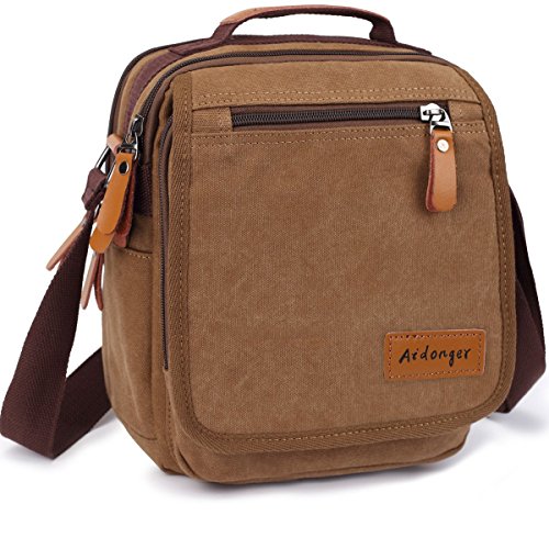 -. Feature : Main Material: 16 Ann high density cotton canvas, cotton lining and PU leather zips / Dimensions: appr. 22 * 7.5 * 26cm Capacity: approx. 8L (small capacity) Please notice the size / Warranty: All of AIDONGER bags have 1-YEAR WARRANTY. Any further problems with your items, please feel free to contact us. We will solve it till your 100% satisfaction / Structure: Two-Way Zipper and A TOTAL OF NINE POCKETS. 2 main zipped pockets, 1 back zipped pockets, 2 front zipped pockets and 1 inner nets zipped pocket.( fits up to 10" tablet, ipad/kindle.) / AIDONGER: It's never too late to get such an awesome canvas Ipad messenger bag that you will receive many compliments from your family and friends