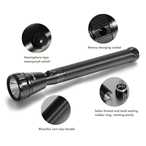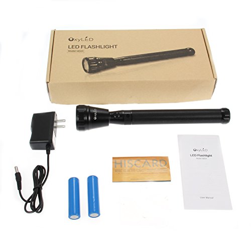 OxyLED MD01 Long Tube Rechargeable CREE LED Flashlight, IP65 Water-Resistant, Battery+Power Adapter