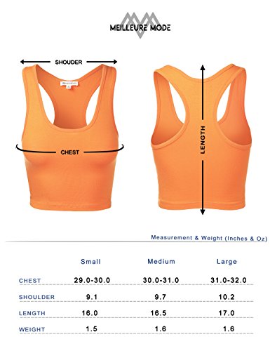 -. Binding : Apparel -. Brand : Meilleur Mode -. Department : womens -. Feature : Special Offer For Limited Time / Lightweight, great for wearing as Yoga, Sports and Pajama top / Stretchy comfortable slim fit. / Machine wash cold water. / Please refer to our Left Size Chart -. ProductGroup : Apparel -. ProductTypeName : SHIRT -. Title : Meilleur Mode Women's Basic Cotton Racerback Tank Crop Tops