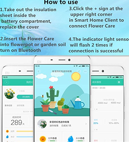 -. Feature : ★Professional Upgraded Plant tool--It can accurate deliver all needs of every greenery & flowers at home, helps you to monitor and analyse if the current moisture,sunlight, fertilizer and temperature are suitable for them or not / ★Intelligent Flower Care APP--With international version, it can work all countries.Monitor your plants' health directly by your smartphone and real-time alert of your plants'needs,help you to communicate exactly what kind of care you need for each plant.Flower Care has a Data Base of More than 900 Plants Curing Method and Could identify 3000 Kinds of Plants / ★EC Sensor & Nutrients Tracking--The smart sensor monitor hydroponic plants by dipping into the water for a couple of seconds,it can also tell you how much qualitative nutrients does the soil contain / ★365 Days Without Recharging--Seekone Smart Flower Monitor will help you to look after your plants during the whole year without recharging,easily take care of your plants on a daily basis / ★Warranty Guaranteed--Full refund & return guarantee with lifetime free warranty.Anything happened about the product,please feel free to contact with us,we will be always here for you