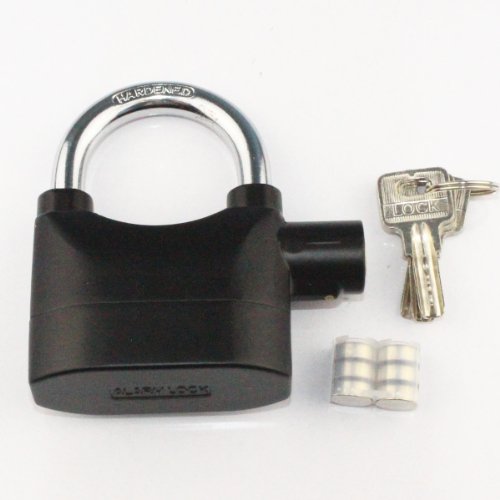 - Feature : 110 dB Alarm; 17mm Shackle Diameter; Anti-cut; Corrosion Resistant; Waterproof; / Hot Processed and Hardened Shackle (With Rubber Coating); Suitable for all weather conditions; / 105-110 db alarm that sounds when tampered; Shake shock move or vibrate sensor; / built in tamper-proof ALARM SYSTEM; Two settings - active alarm and inactive alarm / Package includes: 1 x Alarm padlock; 3 x brass security keys; 6 x button batteries;1 year warranty guarantee!