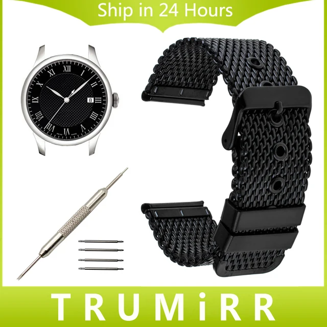 | [해외] Milanese 손목 20 미리메터 22 미리메터 24 미리메터 + 도구 tissot 1853 T035 T097 시계 밴드 스테인레스 스틸 스트랩 손목 벨트 팔찌 블랙 |