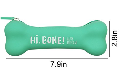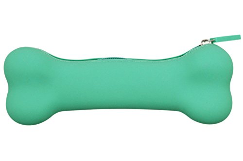 Aimeio Creative Candy Color Bone Shape Silicone Gel Pencil Case Coin Purse Bag Wallet Pouch Keychain Bag Storage Cosmetic Bag (Green)