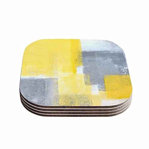 KESS InHouse CarolLynn Tice "Steady Yellow Gray" Coasters (Set of 4), 4 x 4", Multicolor