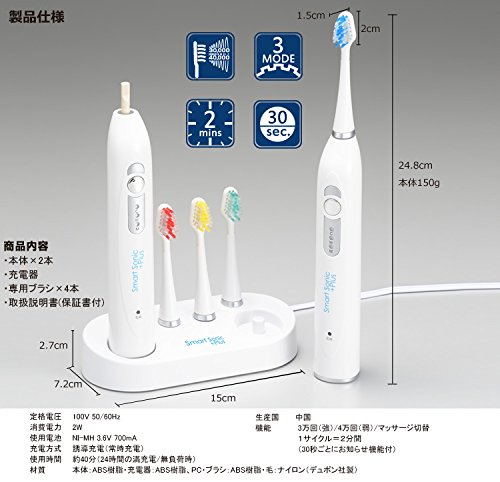・2分間オートタイマー機能、ブラッシング30秒お知らせ機能付きで、快適なデンタルケアをサポート。