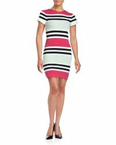 Product DescriptionColorful wide and narrow stripes alternate down a stretchy cotton-knit dress designed to skim the figure.0