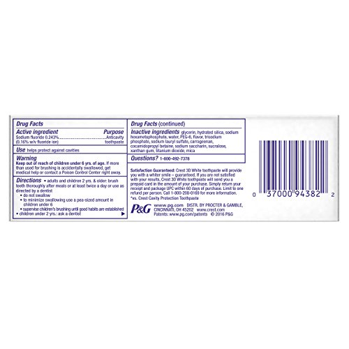 Advanced Whitening Technology with Advanced Freshness and 2X longer cooling versus Crest Cavity Protection Toothpaste