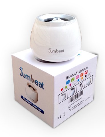 -. Feature : JumBeat makes a great gift for your friends and loved ones! Bluetooth speaker with a stylish and polished design. Sleek, modern and clean-lined. Thanks to its Compact size, Jumbeat looks great everywhere you take it: to the beach, a picnic or a romantic night in. / High quality sound, excellent for loud music and phone calls with very minimal distortion thanks to its enhanced bass resonator. Hands-free function with a built-in microphone noise treatment and echo treatment. Good talking effect of hands free at long distance / Supports bluetooth 3.0, 2.1+EDR, compatible with 2.0/1.2/1.1, works with all bluetooth-enabled devices: smart phones, pads, laptops and desktops, MP3 & DVD players, etc. It also has a 3.5mm audio jack for non-Bluetooth devices / Rechargeable lithium battery with up to 4.5 hours of continuous playtime / Remote controlling function: (mode conversion, play / pause; volume addition and subtraction)