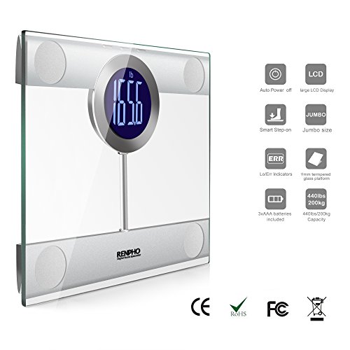 -. Title : RENPHO Digital Bathroom Scale Unique Big Round LCD Display, Extra Large Heavy Duty Platform, 440lbs/200kg