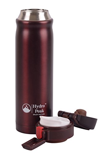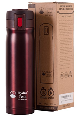 -. Feature : Tired of Cold Coffee and Warm Water? Not with this Coffee Travel Mug. Hydro Peak Water Bottle keeps your desired temperature for a considerable length of time! It keeps hot for 12 hours or cold for 24 hours (ice cubes recommended). The double wall vacuum insulation technology structure permits temperature maintenance of hot or frosty fluids for hours. / Food Grade Stainless Steel - polished durable Eco-friendly and 100% recyclable 18/8 (304) stainless steel material that won't rust and completed with advanced paint spraying innovation. Unbreakable stainless steel interior and exterior. With very strong handle, very suitable for carrying and using outside. / BPA FREE - 100% Non-harmful warm bottle completed with an electrolytic charge which implies no inward covering with polishes, leaving the container free of BPA, phthalates, lead or having a metal taste. / LEAK-PROOF - You can turn it upside down, shake it up, roll it, the liquid will not spill. Drink lid opens with push button ease and locks closed for carefree travel. Hydro Peak bottle stays cool to the touch with hot liquids and is condensation-free with cold. Capacity: 17 ounce light and compact design for effortless transport and storage and fits most automobile drink holders. / LIFETIME WARRANTY - We insist you are 100% satisfied with the high quality of our products. If you have a problem, please contact us immediately and we will be happy to resolve the issue. Hurry and BUY NOW while supplies are plentiful. This makes a great gift for friends, family, and co-workers.