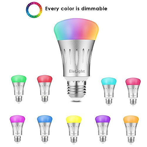 EleLight Smart LED Light Bulb, E27 Multifunctional Wi-Fi Dimmable Night Light Bulb RGBW Color Changing Lamp & Timing Function Wake-up Light Work with Alexa & Google Home for IOS/Android APP Remote Con