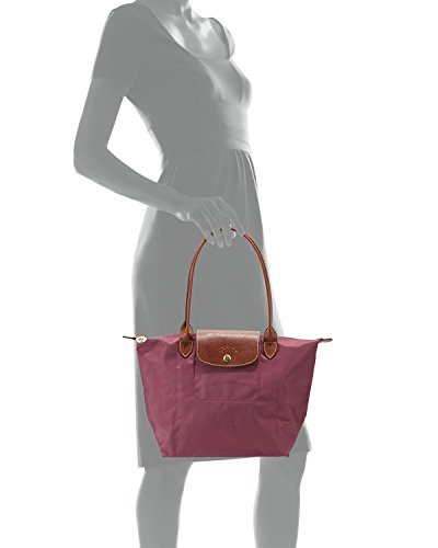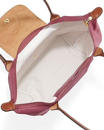 -. Binding : Apparel -. Brand : Longchamp -. Color : Fig -. Department : womens -. EAN : 3597920761212 -. Feature : Durable, lightweight nylon with embossed leather trim and golden hardware. / Tubular shoulder straps; 8" drop / Zip top with signature racing horse medallion pull. / Interior, one open pocket; water-resistant lining. / 9.8"H x 9.8"W x 5.5"D; weighs 5 oz. -. ProductGroup : Apparel -. ProductTypeName : BAG -. Size : Medium -. Title : Longchamp Pliages Fig Medium Tote Bag Purse