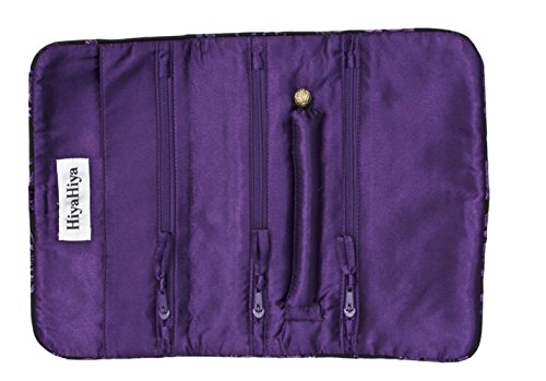 br> Inside you will find 3 zippered pockets for small items like earrings and necklaces, a button-closure ring-roll and a deep interior pocket for larger items like shawl sticks, watches, and brooches.