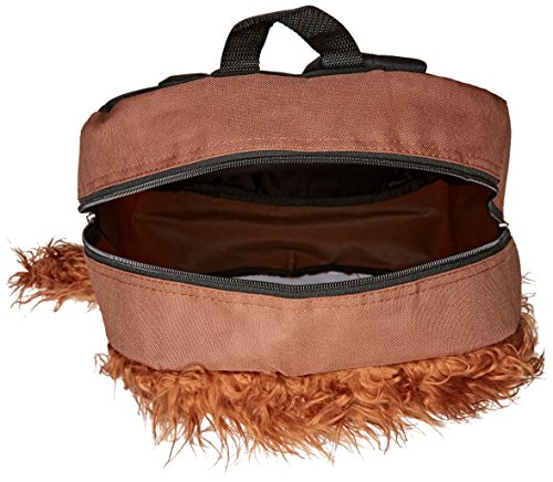 -. Brand : Disney -. Color : Brown Star Wars Chewbacca -. Department : boys -. EAN : 0843340112312 -. Feature : Large size backpack dimensions approx 16" H x 14" W x 4.5"D / Officially licensed Disney Star Wars kids backpack / Features zipper closure, adjustable padded shoulder straps, 3D attributes, faux fur details / Features awesome Star Wars graphics of Chewbacca / Imported; Wipe clean with damp cloth; Bagged -. Model : B15SW23302-KH -. PackageQuantity : 1 -. ProductGroup : Apparel -. ProductTypeName : LAGE -. Size : 16" -. Title : Star Wars Chewbacca 16 inch Backpack (Brown Star Wars Chewbacca) -. UPC : 843340112312