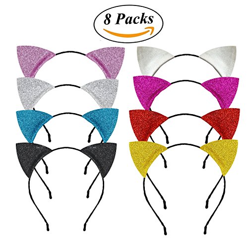 Prohouse 8 Pieces Multi Color Cat Ear Headbands Glitter Cat Hairband Hair Hoops for Daily Wearing and Party Decoration (Cat Ear-8PCS)