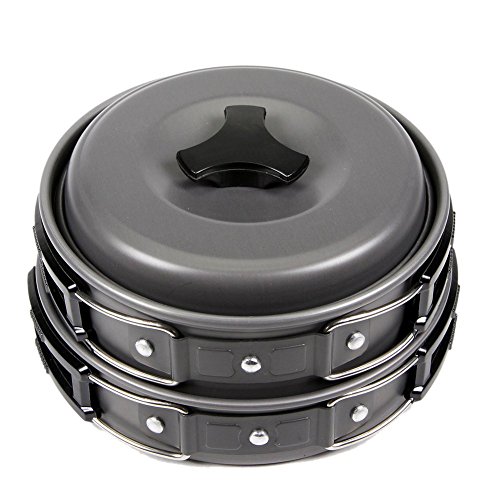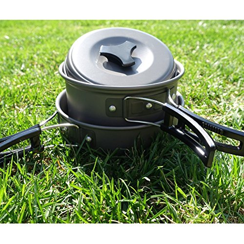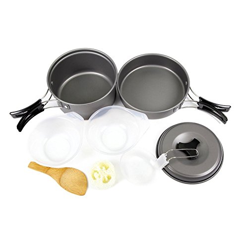 This Lightweight Cooking Set Is A Kind of Non-Stick Cookware.This outdoor cooking set is designed for one or two people.