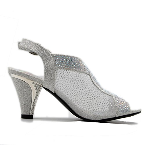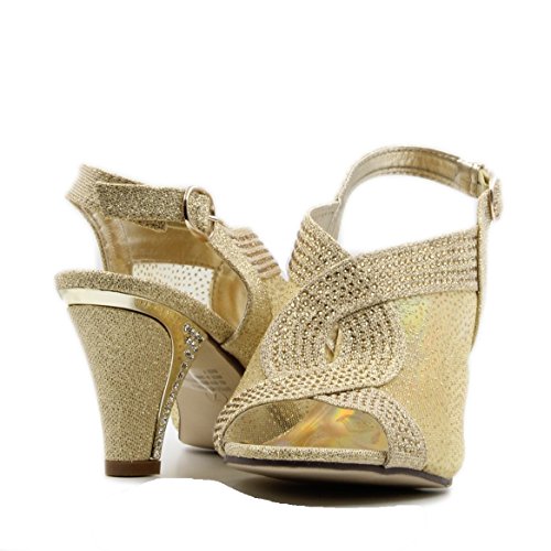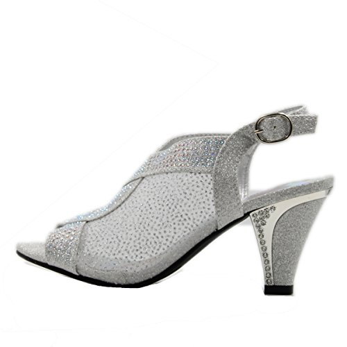(Stylish Comfort - Bella Hanna)/Women's/Sandals/DIRECT FROM USA/Stylish Comfort - Bella Hanna Women's Rhinestone Glitter Peep Toe High Chunky Heel Party/Wedd...