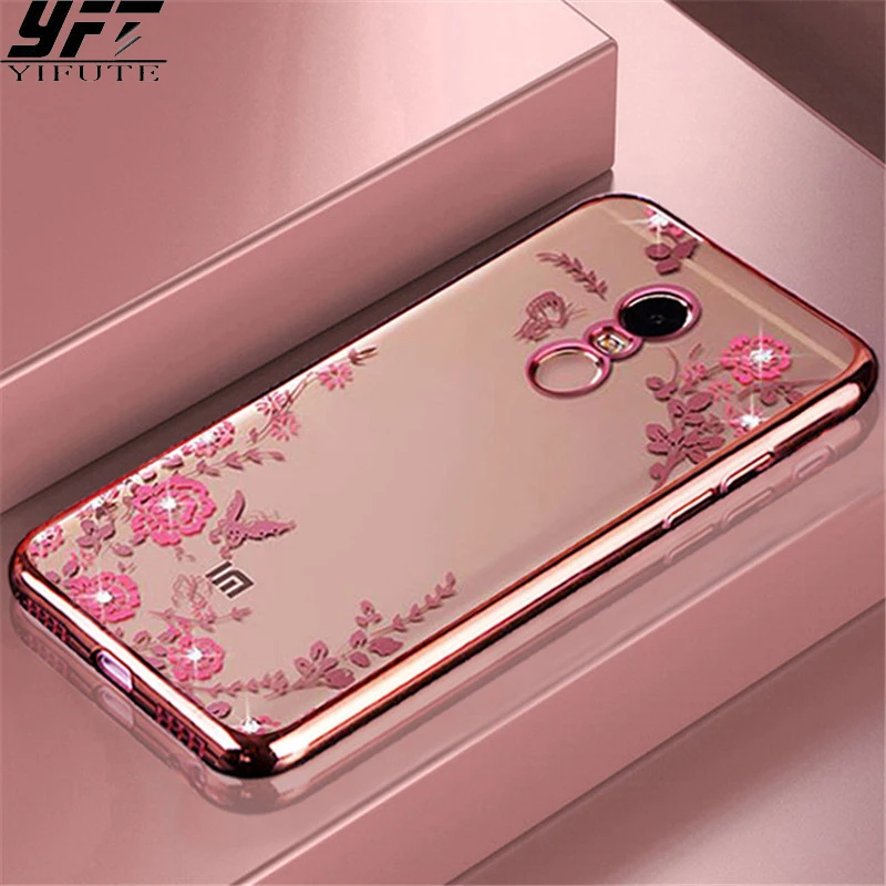 Compatible with5:Soft TPU Plating frame Flowers Cases for Xiaomi Redmi Note 4