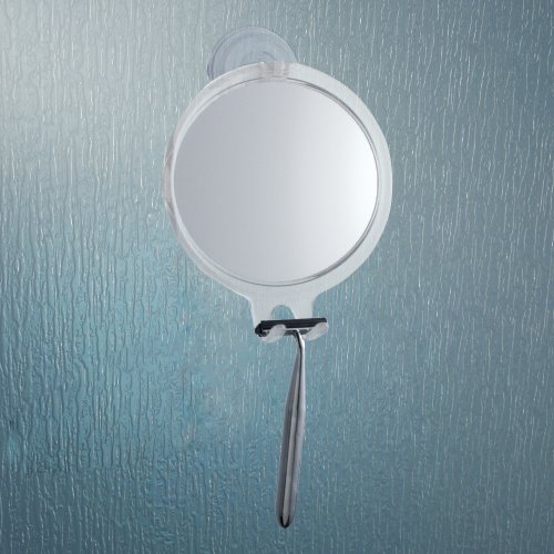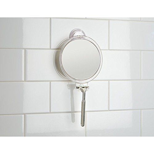 InterDesign Power Lock Suction Shaving Mirror for Shower or Bathroom – Circular Mirror with Razor Holder, Clear