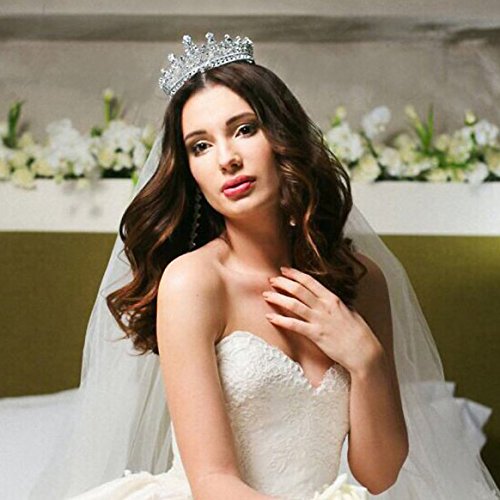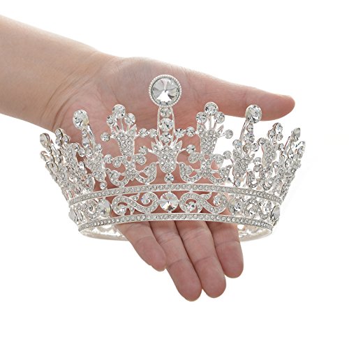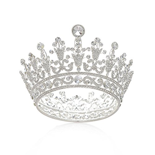 SWEETV Luxury Full Round Crystal Queen Crown Rhinestone Bridal Tiara Pageant Prom Wedding Hair Jewelry