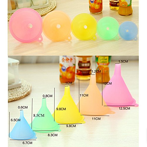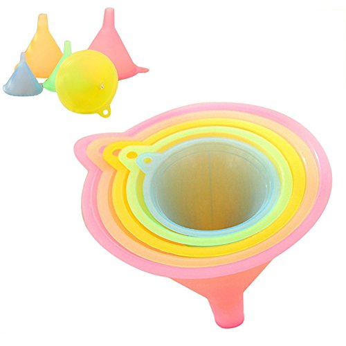 5-Piece Candy Colors Plastic Funnel Set,Ideal Tools for Transferring Liquids Dry Goods,Assorted Sizes