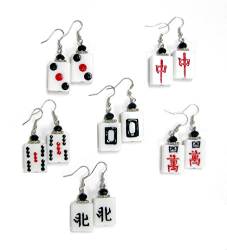 Hand Painted Mahjong Earrings Size20x16x8mm,Length around 1.75" , 6 Pairs Per Set, Styles will be different than picture if certain styles are sold out, Duplicates will be included only if certain styles are sold out.