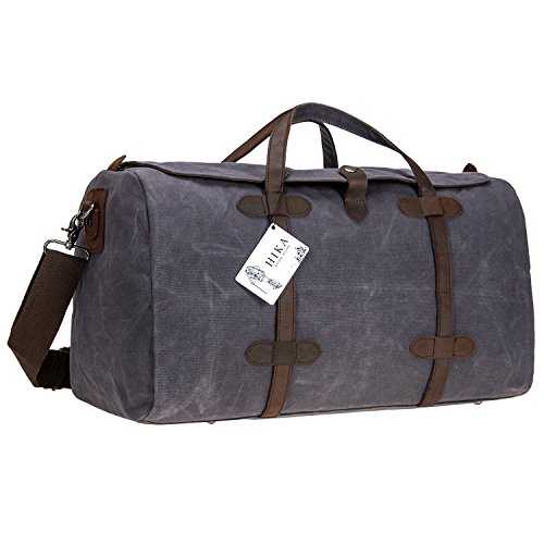 HIKA Waxed Canvas Leather Trim Weekend Bag Men Women Gym Duffel bag Travel Handbag