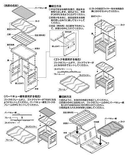 재질: 본체 숯 받이:스테인레스강,바베큐망《고토쿠》눈(째)명 스탠드: 철(크롬 도금)