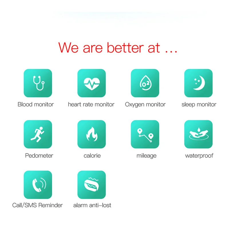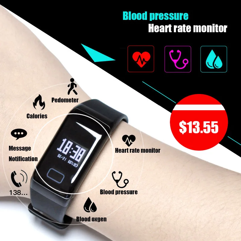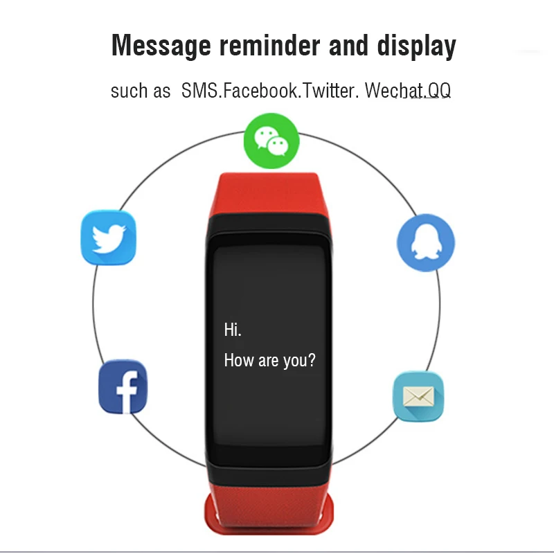 Function:Blood Pressure,Passometer,Sleep Tracker,Activity Tracker,Fitness Tracker,Push Message,Heart Rate Tracker,Alarm Clock,Social Media Notifications,Message Reminder,Call Reminder