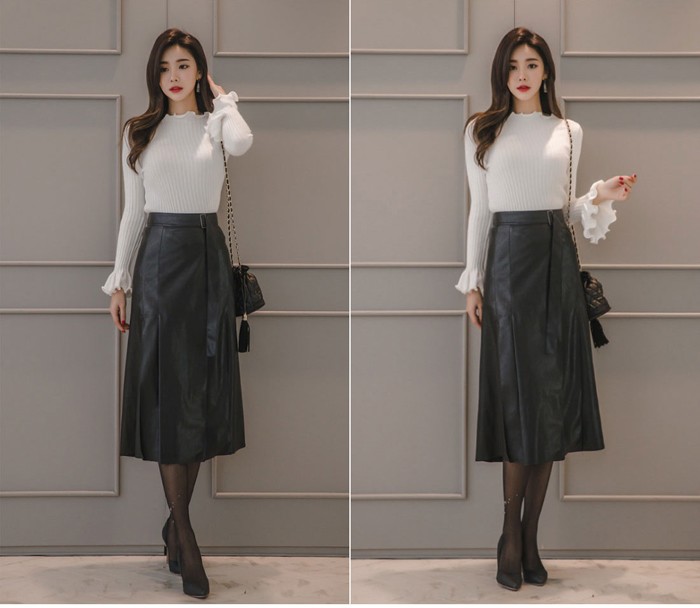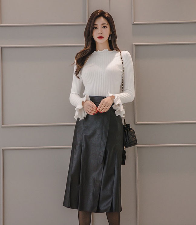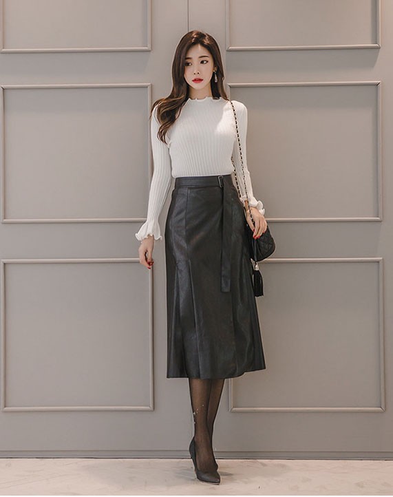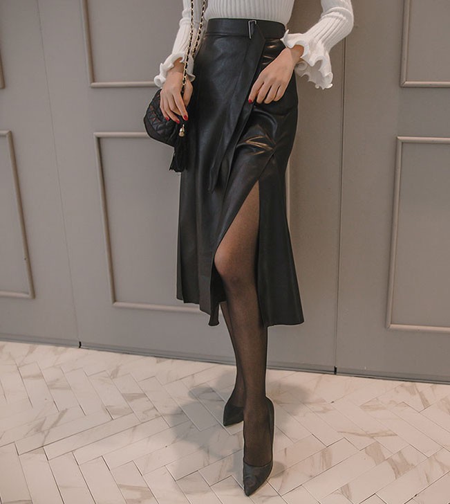 商品名:スカート ロング丈 レザー風