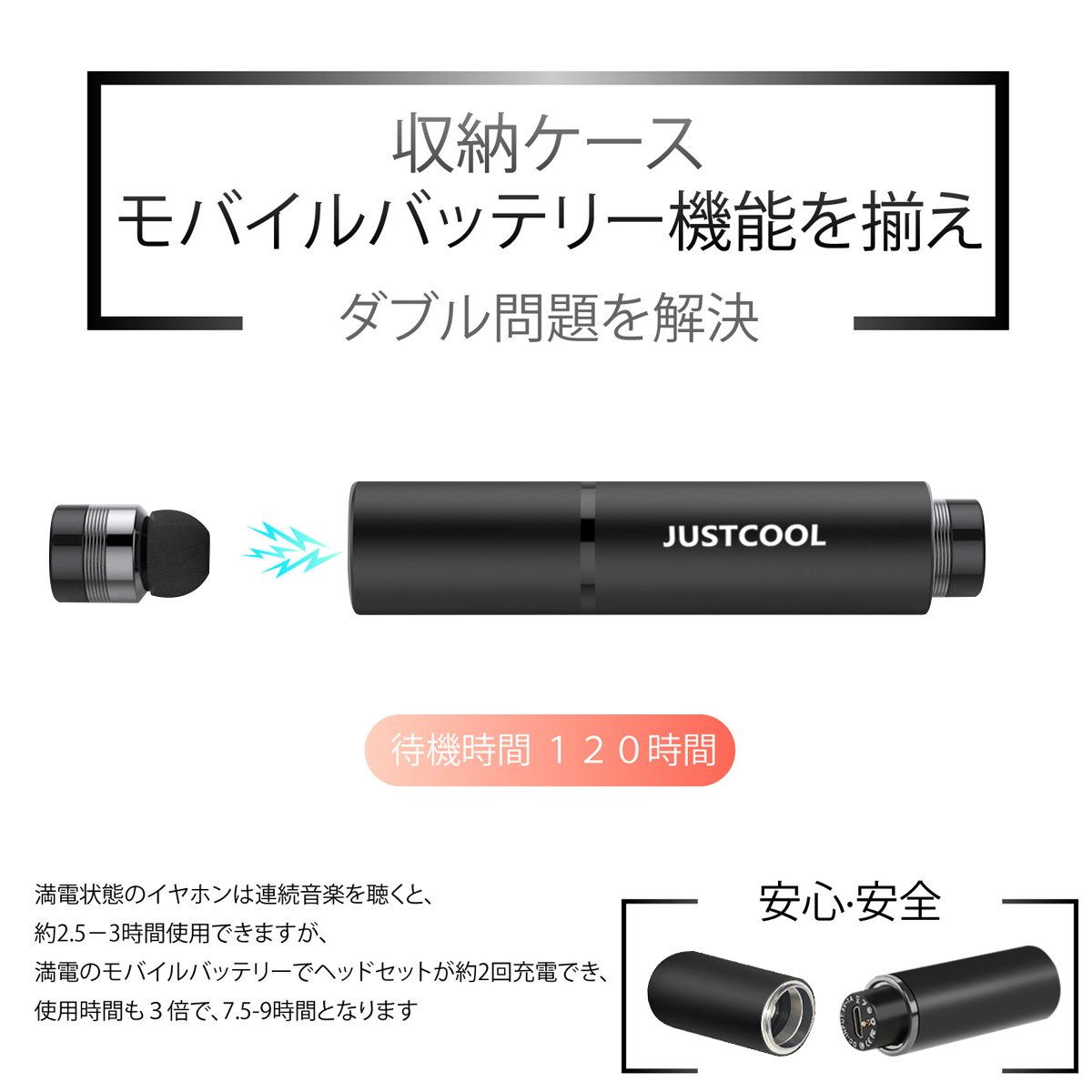 【本製品がGZYF-JPに販売されるのみで、別の販売者に騙されないでください。】お願い:もし何かご質問がありましたら、ぜひこちらと連絡してください。革新的なワイヤレスイヤホンで、高級感が溢れているデザインと素材で、充電ボックスとマグネット収納ケースを一体させ、250mAhのバッテリーケース付きますので、一回フル充電で約2回のイヤホンを充電、およそ最大7.5-9時間再生可能です。待受時間も約120時間です。バッテリー不足を心配せず、通勤、通学など長時間安心してご使用いただけます。