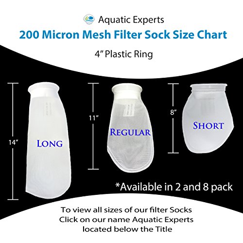 MESH Filter Socks 200 Micron - 4 Inch Ring by 8 Inch Long – SHORT - Aquarium Filter Bags - Custom Made In The USA For Aquatic Experts