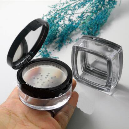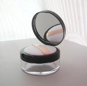 1PC Clear Empty Round Make Up Loose Powder Container Case With Sponge Powder Puff Mirror Black Lid Sifter Compact Glitter Powder Foundation Box Bottle