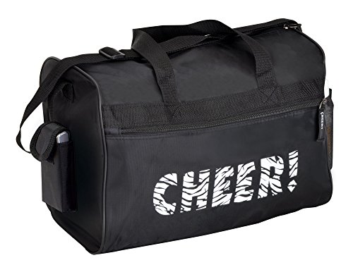 -. Brand : Getz -. Color : Black -. Department : womens -. EAN : 0821360101660 -. Feature : Black cheer duffel bag with a "Cheer" zebra print on one side. Full zipper main closure. / Long zip pocket on both front and back sides. Medium size, 15.5" x 11" x 8.5". / Dual carry handles plus adjustable-length, non-removable shoulder strap. / Stretch-top mesh water bottle pocket and a small velcro-close basic cell phone pocket at ends. / Inside four elastic-top mesh pockets; removable liner board at bottom. Material: nylon with PVC backing. -. ProductGroup : Apparel -. ProductTypeName : LAGE -. Size : One Size -. Title : Medium Zebra Print Nylon Cheer Duffel Bag by Getz -. UPC : 821360101660