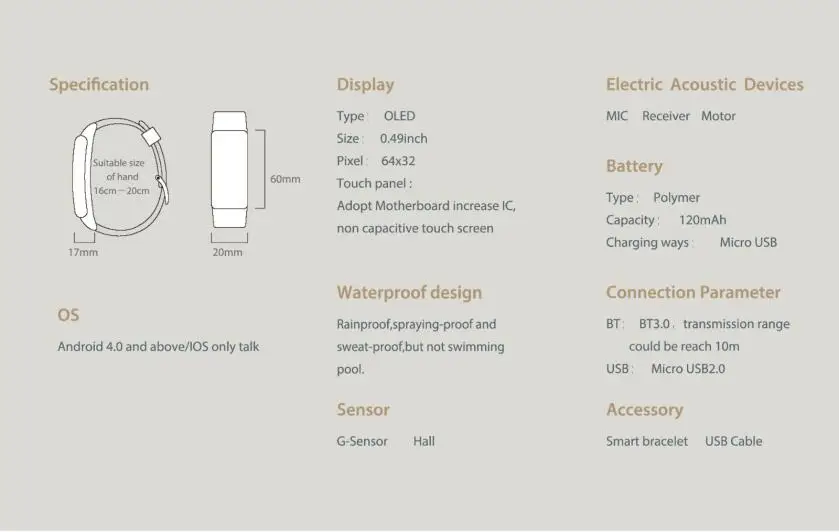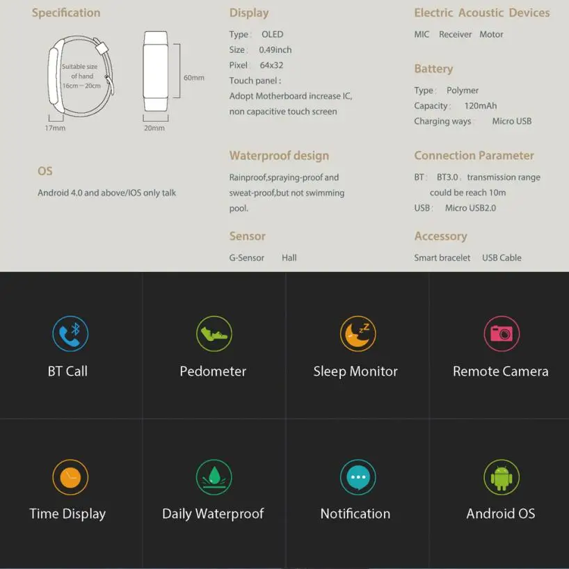 Function:Dial Call,Message Reminder,Answer Call,Passometer,Fitness Tracker,Call Reminder,Sleep Tracker,Heart Rate Tracker