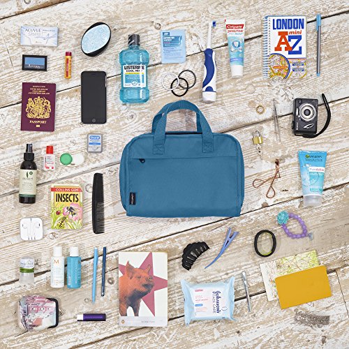 The New?Lilliput Medium Hanging Toiletries Bag will be your perfect travel companion: with its functional design, great construction materials and attention to details it reinvents your organizational needs when you most need it. Globetrotters and business travelers alike will love the clever practicality of this compact, pack-it-all bag. This travel organizer it's NOT TSA Approved: although perfect as an hanging dopp kit, to be allowed into a carry-on trolley bag a cosmetic purse needs to be 7.5" x 8"in size (quart-sized), whereas this travel kit bag measures 8-1/4" x 11.5"?closed, and 18.5" x 11.5" open. It's an excellent choice if you have checked luggage where you can place it neatly folded or flat open, and also great if you're traveling by car, bus, train (to replace your old, hard cosmetic train case!), motorbike or on vacation with your family, camping, doing picnic or relaxing at the beach with your kids (use it to keep sunblock lotions, creams, mosquito repellent sprays, phone chargers, photo camera accessories, etc.). You can now keep a large variety of products and travel essentials into ONE single bag; what you normally had to secure elsewhere between your suitcase, carryon luggage or handbag you can now find it at easy reach all in the same place: electric toothbrush, toothpaste, shampoo, conditioner, flat iron, hair brushes, body lotion, sun screen protector, phone charger, electronic cables, nail clipper, cough medicine, plug adapter and MUCH MUCH MORE can now fit together. Make your life easier, enjoy your journey and focus on the most important aspects of your trips while the Lilliput Toiletry Bag will take care of your worldly stuff. 100% Money Back Guarantee 0 |