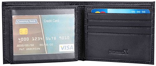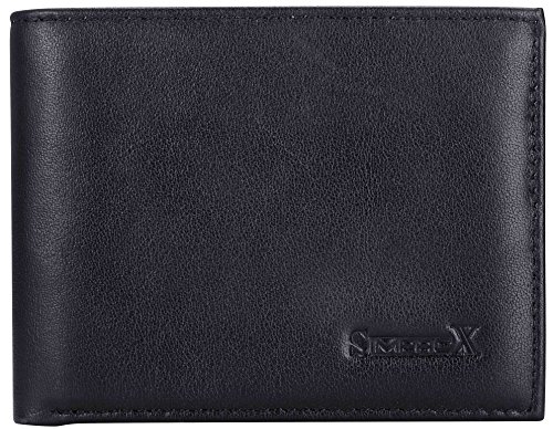 -. Binding : Apparel -. Brand : SimpacX -. Color : Black -. Department : mens -. Feature : Genuine Leather Inside & Out / RFID Blocking: this wallet is equipped with aluminum lining which can stop digital thieves from stealing your vital financial and personal data / Measures: 4 1/4" x 3 1/4" x 1/2" - New Slimmer Sizing / Classic style wallet that looks like a bifold but opens like a trifold / 12 Card Slots, 3 additional card slot pockets + Flip Out ID Window -. ProductGroup : Apparel -. ProductTypeName : ACCESSORY -. Size : One Size -. Title : SimpacX Mens Genuine Leather Flipout ID Wallet Bifold Trifold Hybrid RFID Blocking