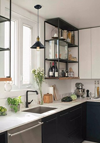 Dazhuan Industrial Ceiling Light Metal Lampshade Hanging Lamp Black Farmhouse Pendant Light Fixture, 22CM, 1-Light