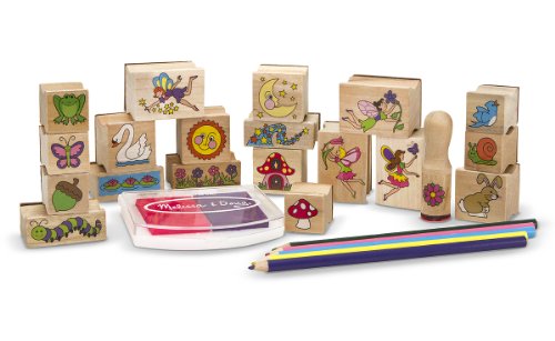 - Includes 20 stamps, 5 colored pencils, durable 2-color stamp pad, and wooden storage tray
