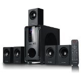 This Acoustic Audio System features a contemporary design and is a stylish addition to any home. This 700 watt, 6-piece system includes one (300W) powered subwoofer and five (80W) satellite speakers as well as cables and instructions needed to "Plug and Play" any audio source with a RCA audio output or use the front panel USB interface or SD/MMC card input. Use it for your home theater system, personal computer or laptop, gaming system, "i" device, MP3 player, or other audio devices. The powered subwoofer features front touch panel controls and independent speaker controls as well as bass, treble and volume functions. It utilizes a digitally tuned wooden enclosure for increased bass response. The full-range satellite speakers feature magnetic shielding for use near televisions and computer monitors as well as included mounting hardware.Feature