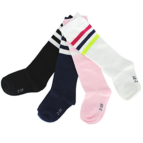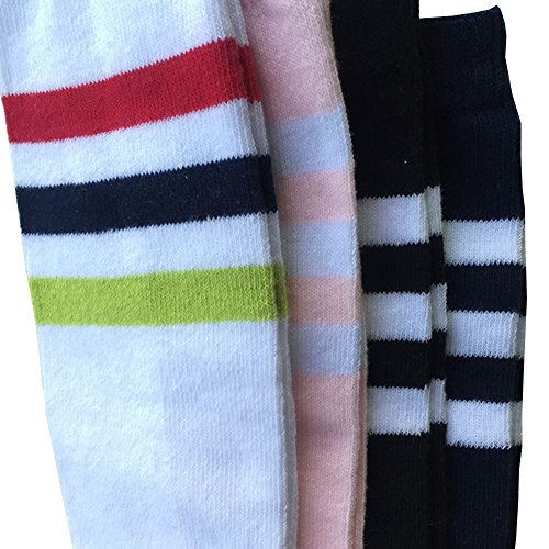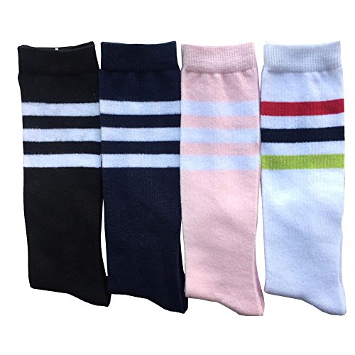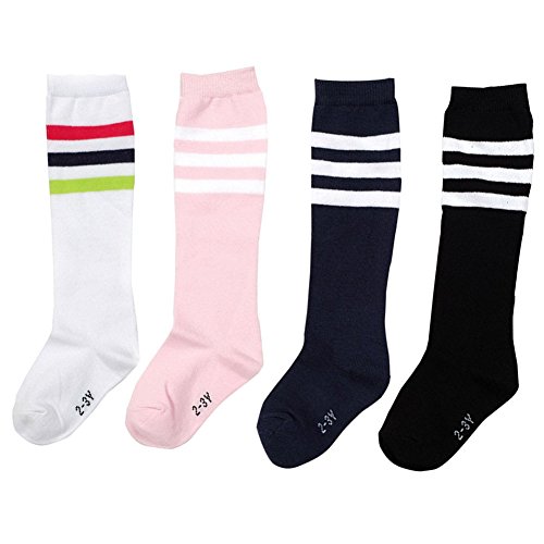 BESTCYC Pack of 4 Pairs Different Color Children Boys Girls Toddlers Cotton Knee Long Socks High Tube Soccer Socks Team Socks for Kids