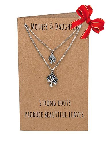 Mother daughter jewelry is very special. It is given and worn to signify the eternal bond between them. The tree of life necklace perfectly represents this link. The tree life pendant is made of pewter. The mother tree pendant is larger than the daughter tree pendant. The mother daughter necklace set for 2 comes with a stainless steel chain. It is 16-inches long but can be expanded to 18-inches. This 2-piece necklace set with tree of life charms comes with a greeting card with quote that reads, "Mother & Daughter - Strong Roots Produce Beautiful Leaves." The greeting card is made of quality stock recycled paper. The envelope is included for you to mail this as a gift. There is also an outer package that makes this a complete package that will delight the mother daughter.Feature