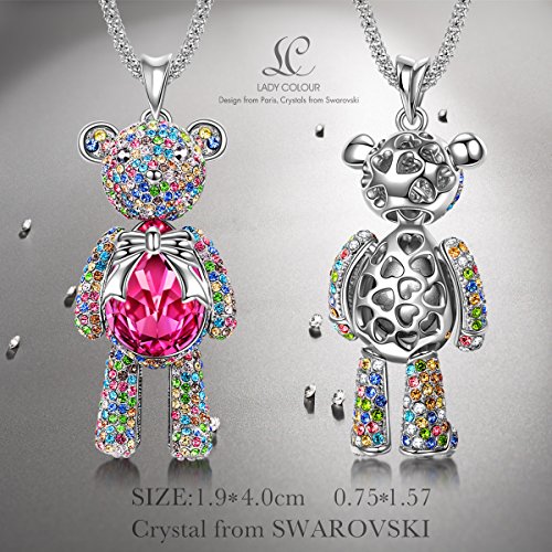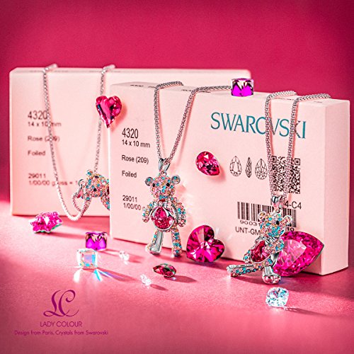 ▲Specifications: 1.Pendant Height: 1 1/4", Pendant Width: 6/10". Chain Length: 17 1/2" plus 2" | 2. Stone: Swarovski crystals. Stone Color: Ruby & Clear. | 3.Eco-friendly Rhodium Plated Zinc alloy,Lead-Free & Nickle-Free,Passed Swiss SGS Inspection Standard.This ruby necklace made with crystals from Swarovski,which makes this fashion jewelry sparkling,elegant and absolutely eye catching,this on-trend silhouette demonstrates Swarovski's craftsmanship at its best.Swrovski crystals add infinite brilliance to everything they embellish.